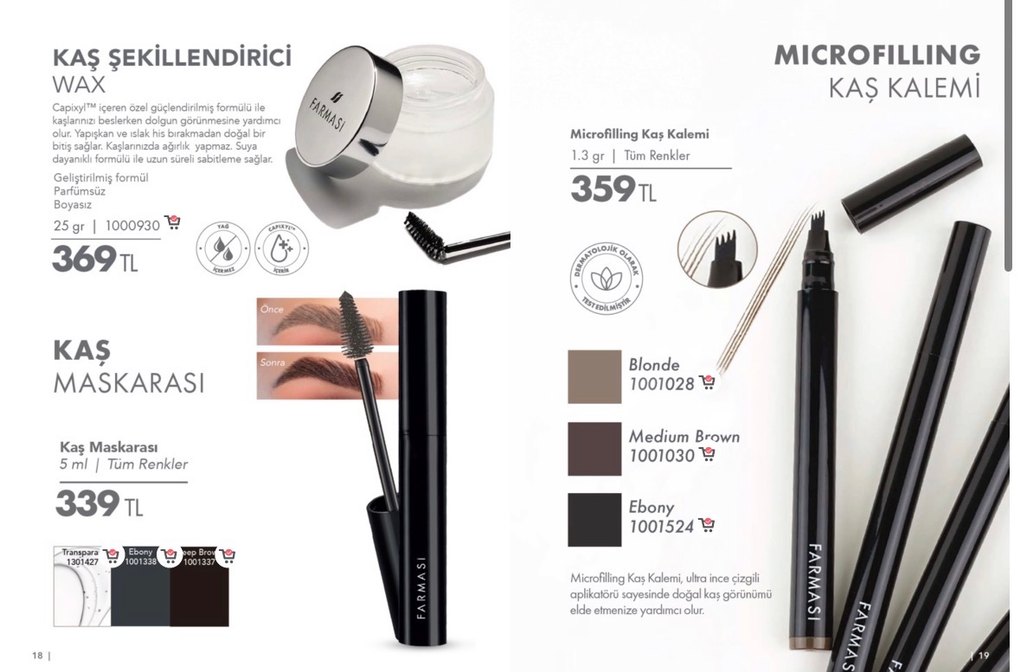 Farmasi Microfilling Kaş Kalemi, ince çizgilerle doğal kaş görünümü sağlar. Aplikatörlü, 1,3 gr, Blonde, Medium Brown ve Ebony renk seçenekleriyle. ️