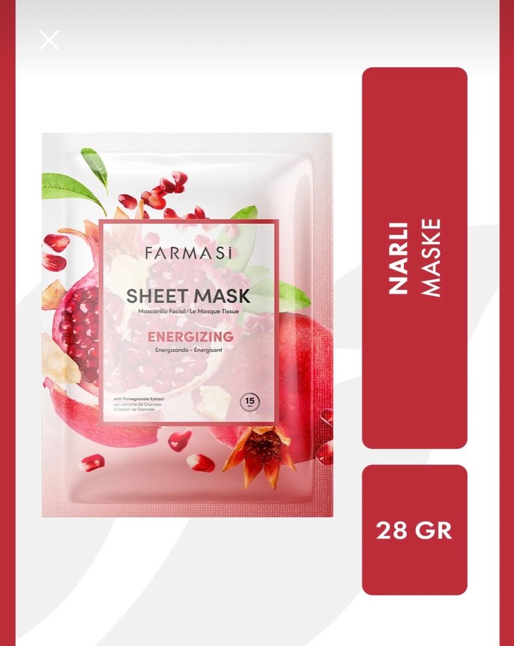Farmasi nar özlü sheet mask 28 gram, cildi canlandırıcı etki sağlar.