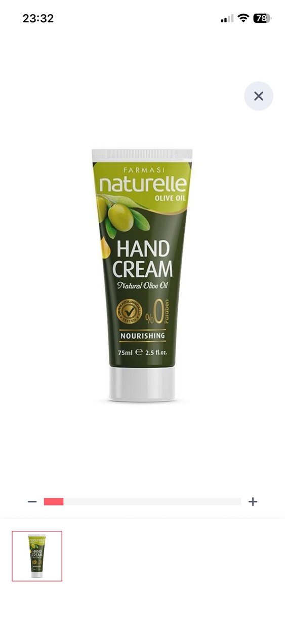 Farmasi Naturelle el kremi, doğal zeytinyağı içeriği ile elleri besler ve nemlendirir. 75ml tüp, kuru ciltler için etkili bakım sağlar. Elimde çok var