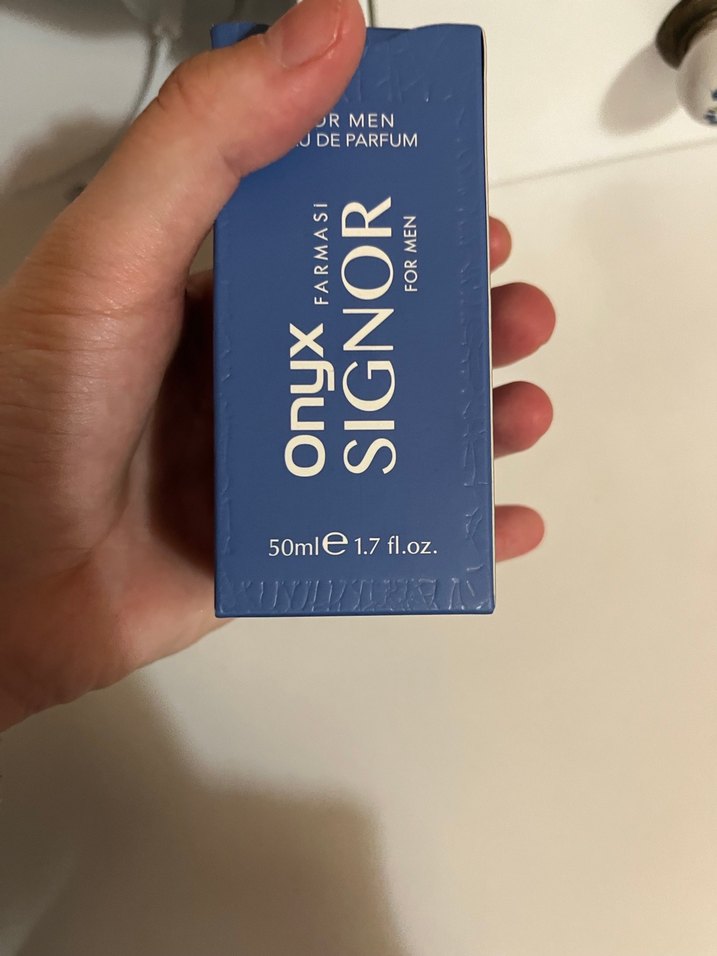 Farmasi Onyx Signor, koyu mavi renkte, minimalist tarzda erkek parfümüdür. 50 ml şişede sunulur. Ambalajda "RMEN, JDEPARFUM, 50ml e 1.7 fl. oz." yazısı bulunur.