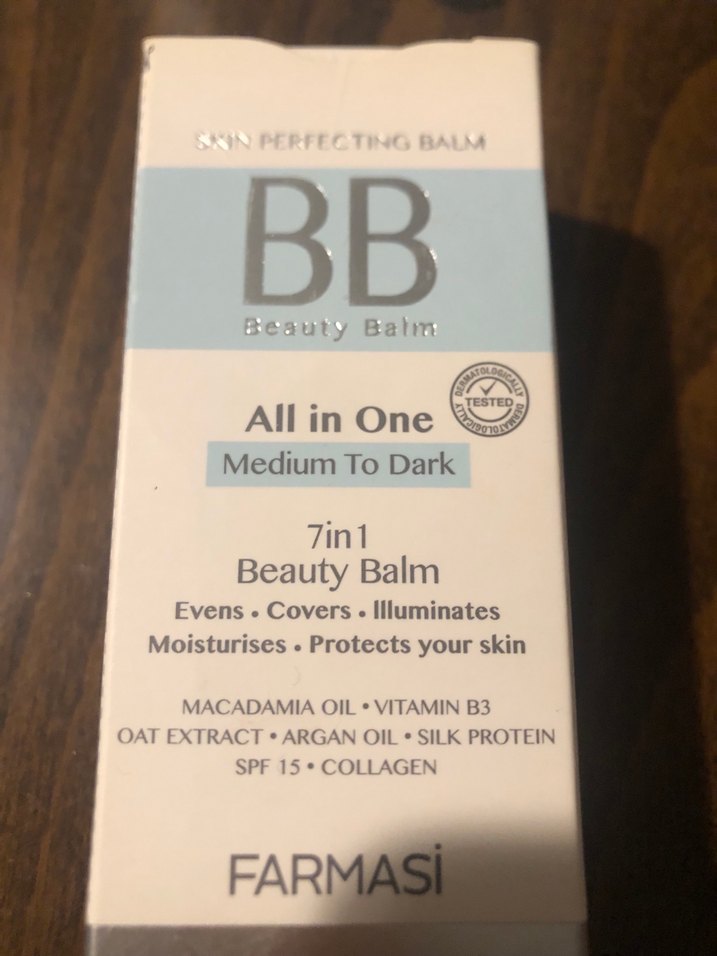 Farmasi BB Krem, cilt tonunu eşitler, kapatır, aydınlatır, nemlendirir ve SPF 15 ile korur. İçeriğinde makadamya yağı, B3 vitamini, yulaf özü, argan yağı, ipek proteini ve kolajen bulunur. ✨