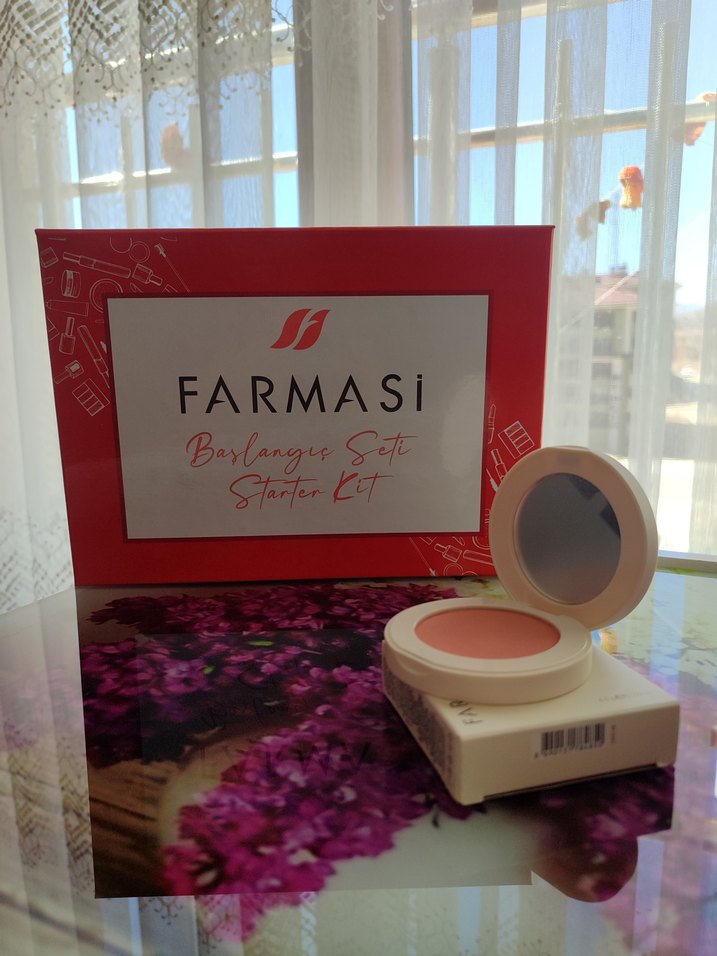Farmasi pastel pembemsi allık seti, yumuşak ve doğal bitiş sağlar. Başlangıç seti kutusunda sunulur.