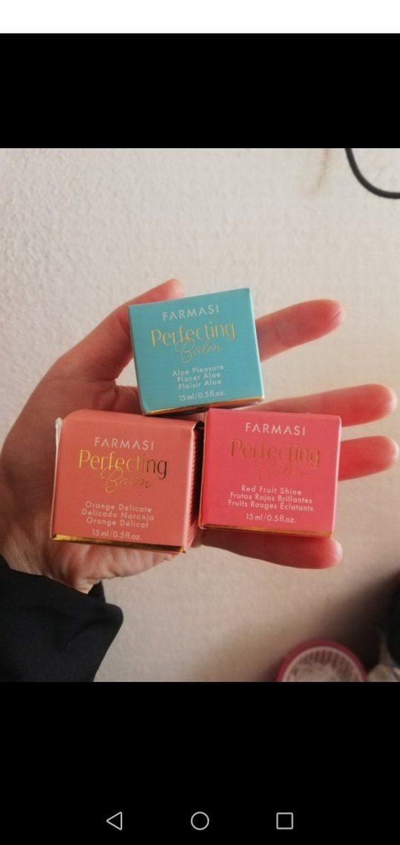 Farmasi Perfecting Balm, Aloe, Turuncu Narenciye ve Kırmızı Meyve Parlaklığı olmak üzere üç çeşitte, 15 ml boyutunda, besleyici ve pürüzsüz formüle sahip.