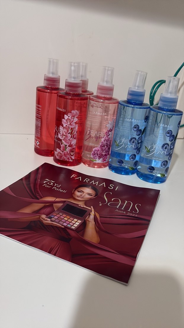 Farmasi Sans kadın parfüm seti, sprey şişelerde çeşitli çiçeksi ve meyvemsi kokular sunar.