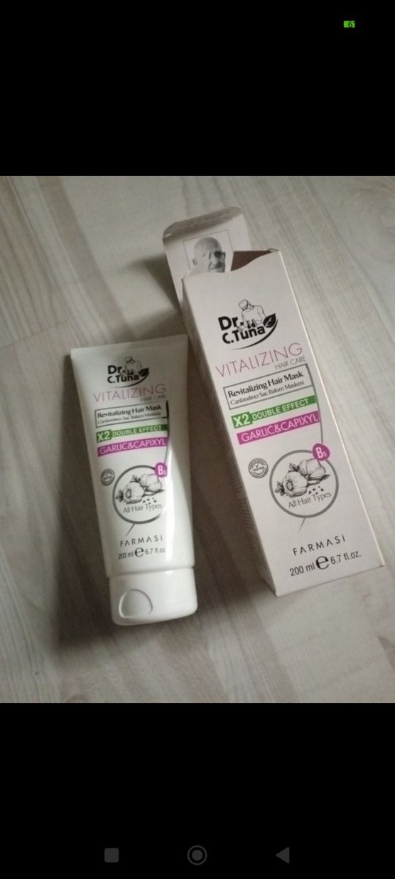 Farmasi Dr. C. Tuna Vitalizing saç maskesi, sarımsak ve Capixyl içerir, tüm saç tipleri için canlandırıcıdır. 200 ml tüpte sunulur.