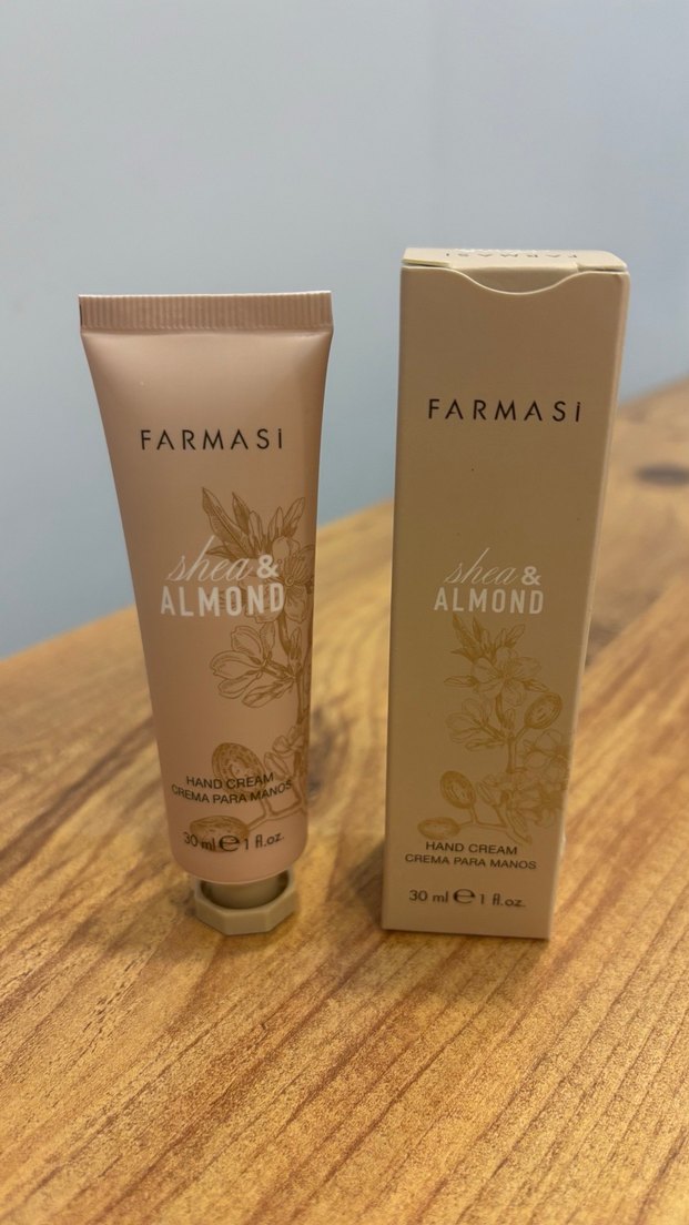 Farmasi Shea & Badem el kremi 30 ml tüpte, ellerinizi yumuşak ve besleyici şekilde bakım sağlar.