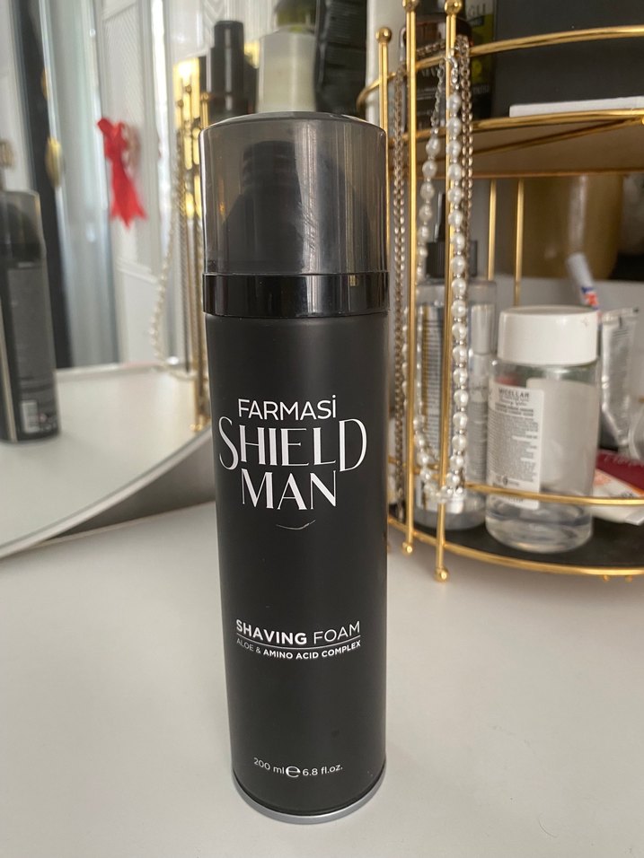 Farmasi Shield Man tıraş köpüğü, vitamin ve amino asit kompleksi içerir. 200 ml'lik kutusu kolay uygulama ve cilt koruması sağlar.