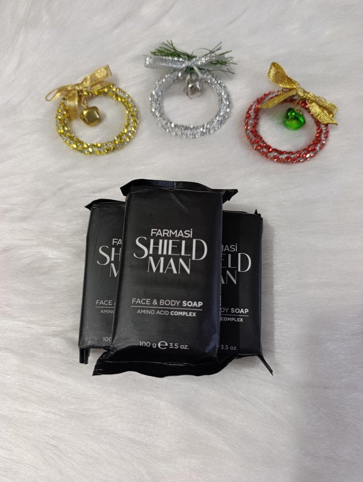 Farmasi Shield Man, amino asit kompleksi içeren 100g yüz ve vücut sabunu. Erkek cilt bakımı için uygundur. Tek fiyat