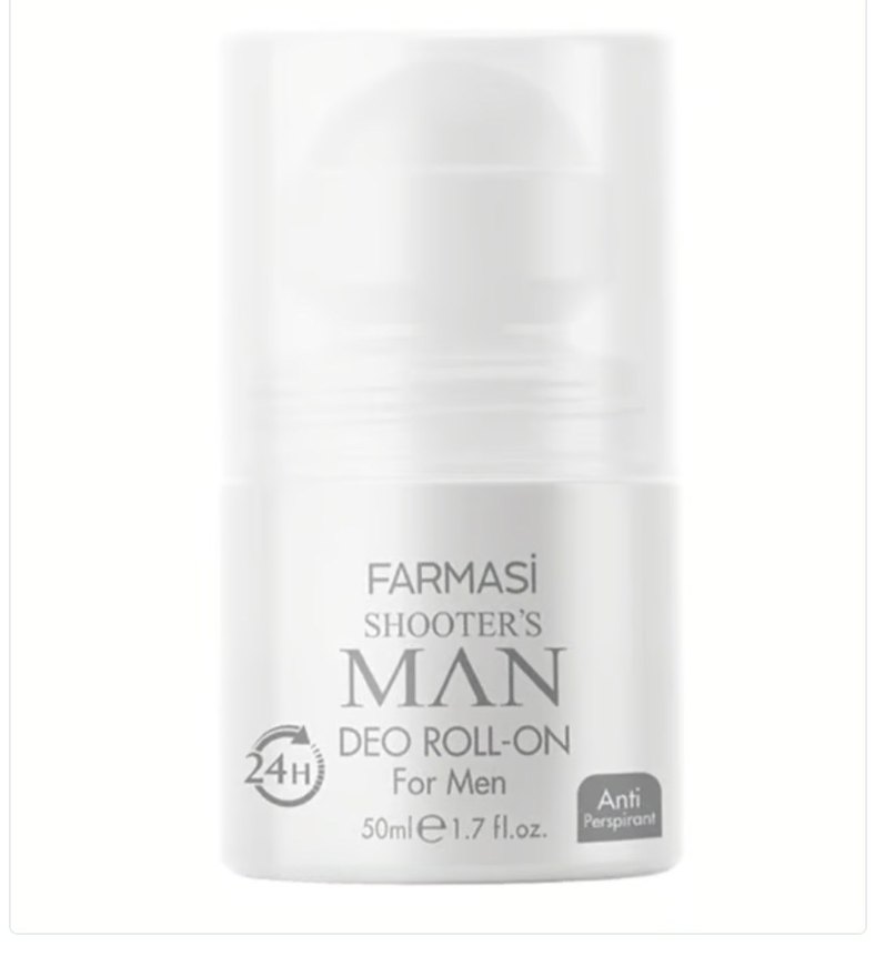 Farmasi Shooter's Man erkek roll-on deodorant 50 ml, 24 saat anti-perspirant koruma sağlar. Erkekler için tasarlanmıştır.