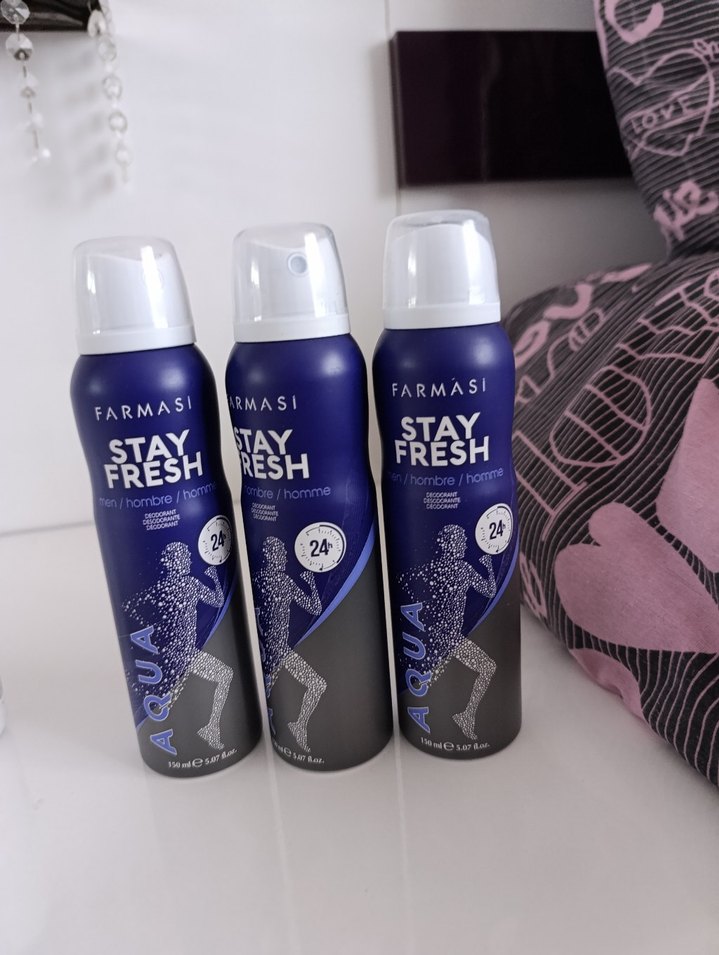 Farmasi Stay Fresh Aqua kadın deodorant, 24 saat koruma ve ferah koku sağlar. 150 ml sprey, güvenli ve rahat hissettirir.
