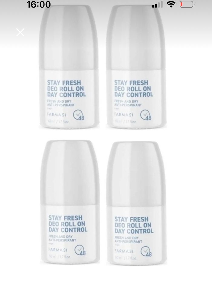 Farmasi Stay Fresh Deo Roll-On, gün boyu kontrol sağlayan ferah ve kuru anti-perspirant formüle sahiptir. Her şişe 48 saat koruma sunar. Day control 4 adet