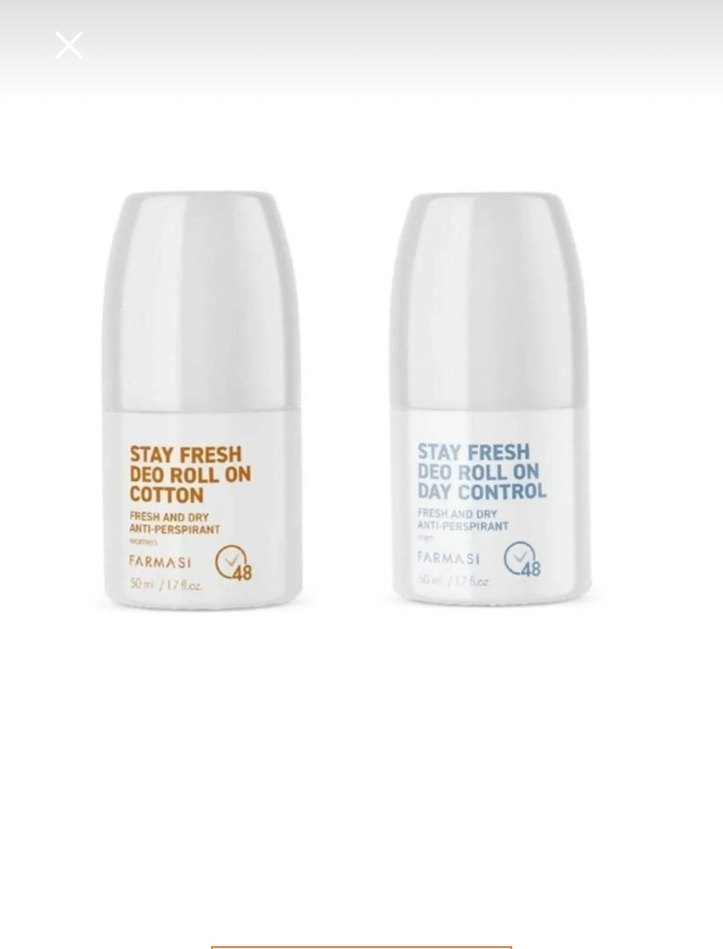 Farmasi Stay Fresh roll-on deodorantlar, 48 saat tazelik ve kuruluk sağlar. Pamuk kokulu, etkili kadın antiperspirantıdır. Cotton ve day roll on. 2 adet
