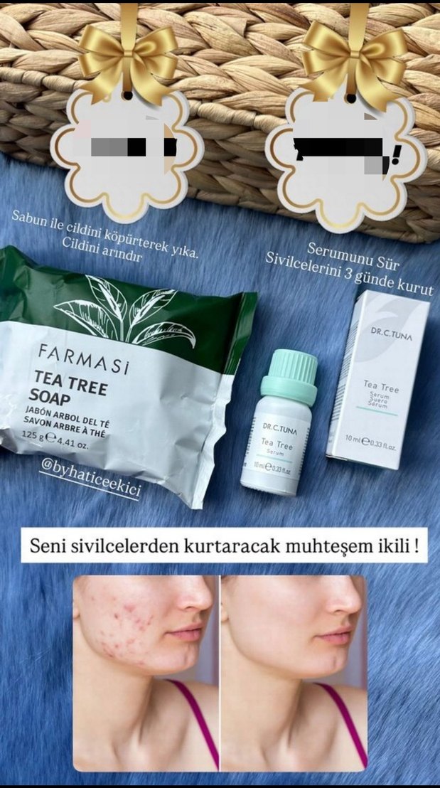 Farmasi Tea Tree sabun ve serum seti, cildi köpürterek temizler ve sivilceleri 3 günde kurutmaya yardımcı olur.