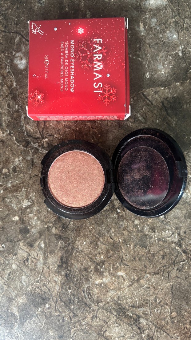 Farmasi mono göz farı, koyu bej tonunda ve ışıltılı yapıda. Aynalı kompakt kutuda sunulur. ✨
