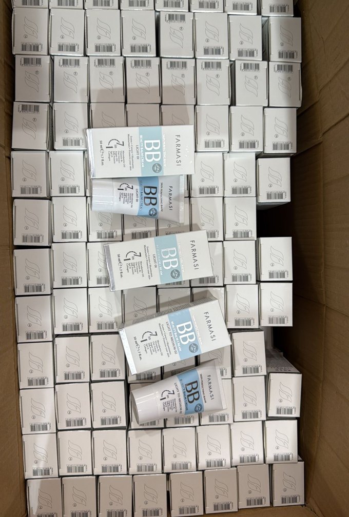 Farmasi markalı bej renkli BB krem, hafif kapatıcılık ve doğal bir görünüm sağlar. Ambalajı gri renktedir.
