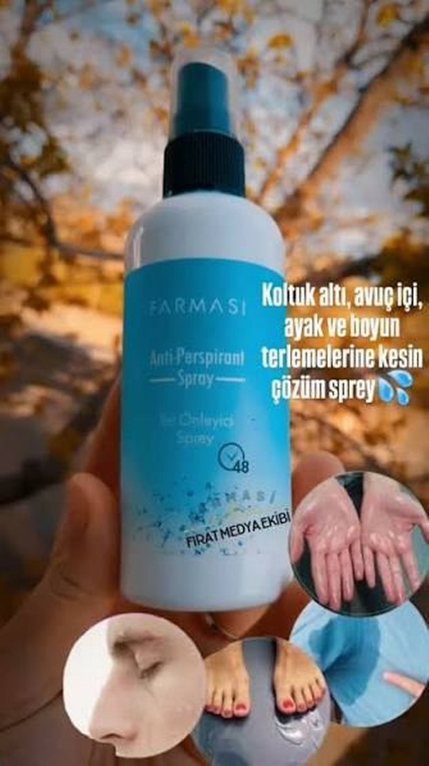 Farmasi terlemeye karşı sprey, koltuk altı, avuç içi, ayak ve boyun terlemelerine kesin çözüm sunar. 48 saate kadar koruma sağlar.