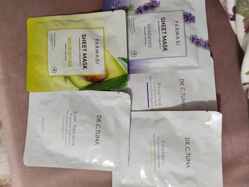 Set, Farmasi besleyici ve yenileyici yaprak maskeler ile Dr. C. Tuna Resurface, Calendula ve Lumi Radiance yüz maskelerini içerir, cildi nemlendirir ve canlandırır.