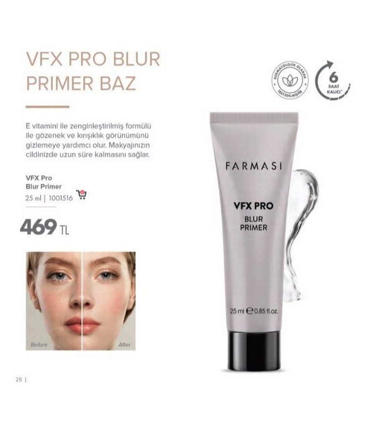 Farmasi VFX Pro Blur Makyaj Bazı, vitaminle zenginleştirilmiş formülüyle gözenek ve kırışıklık görünümünü azaltmaya yardımcı olur. Makyajınızın cildinizde uzun süre kalmasını sağlar. ✨