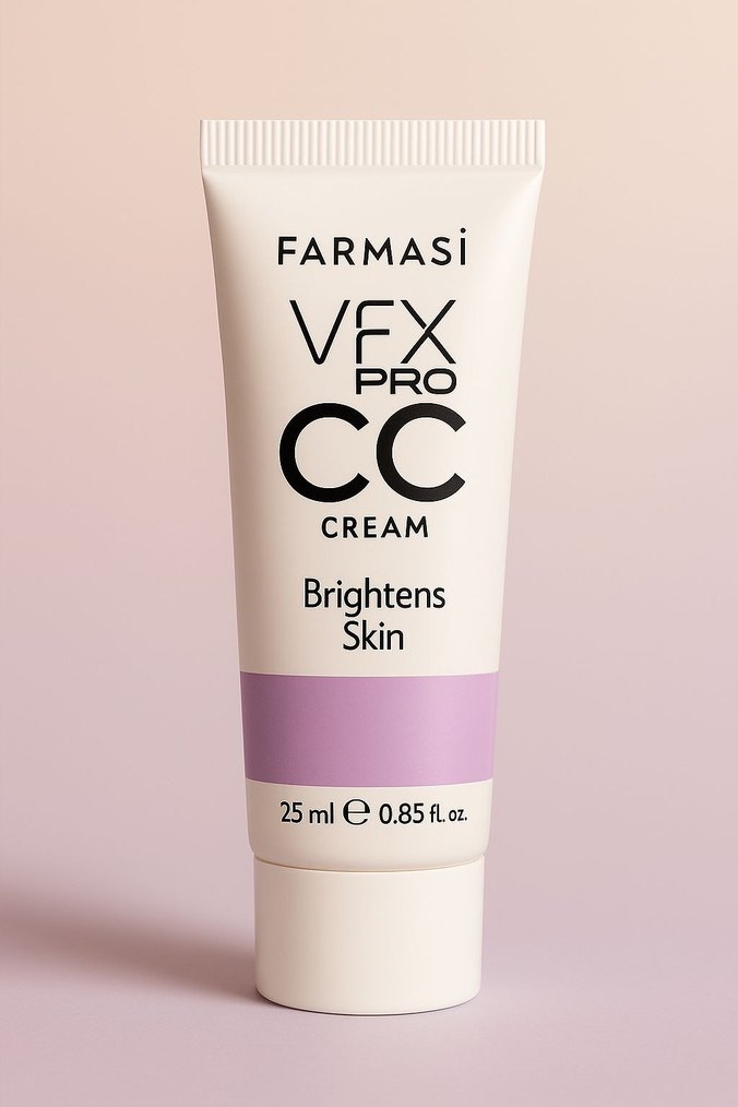 Farmasi VFX Pro CC Cream, pastel bej tonuyla cildi aydınlatır ve makyaj bazı olarak kullanılır. 25 ml tüpte sunulur. (Sıfır ürün ) ✨