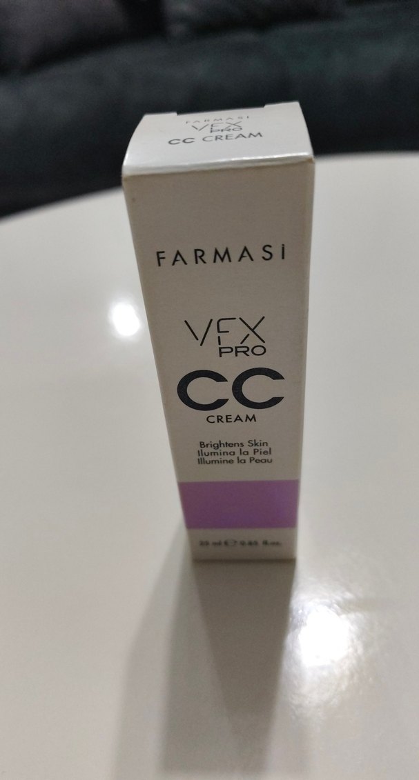 Farmasi VFX Pro CC krem açık bej tonunda, cildi aydınlatır ve doğal bir görünüm sunar. Hafif kapatıcılığı vardır.
