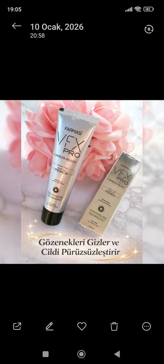 Farmasi VFX Pro makyaj bazı, gözenekleri gizler ve cildi pürüzsüzleştirir. Beyaz renkte, foto filtre teknolojisi içerir.