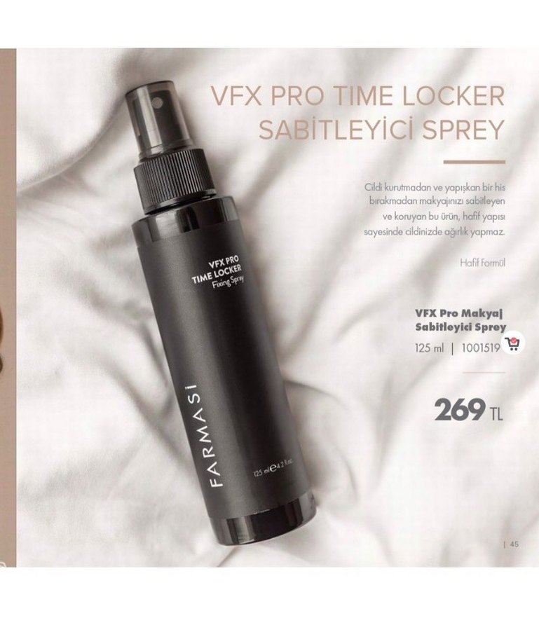 Farmasi VFX Pro Time Locker, cildi kurutmadan ve yapışkanlık bırakmadan makyajınızı sabitleyen hafif bir sprey. Makyajın kalıcılığını artırır ve cildi ferah tutar.