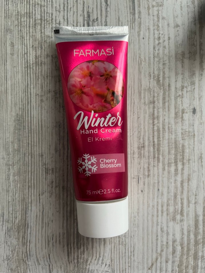 Farmasi Winter El Kremi, kiraz çiçeği kokusuyla elleri nemlendirir ve yumuşatır. 75 ml tüpte.