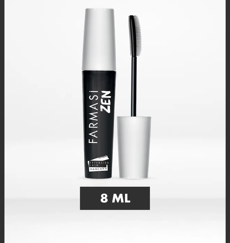 Farmasi Zen maskara, 8 ML hacminde, kirpikleri uzatıp belirginleştiren yumuşak uygulamalı ürün.
