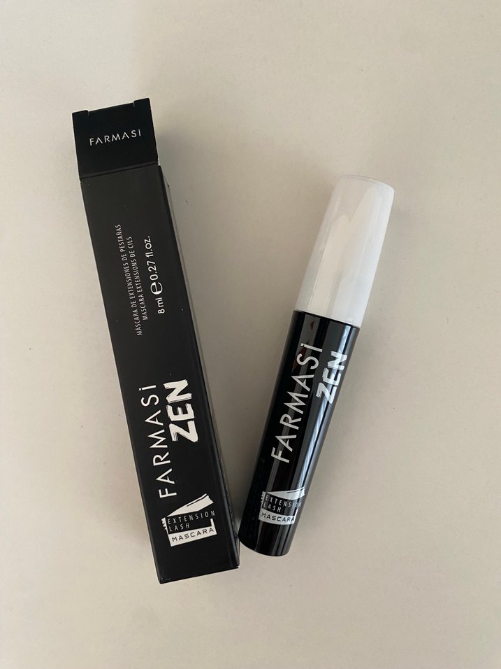 Farmasi Zen maskara, yoğun siyah renk ve 8 ml hacme sahiptir. Kirpiklere uzatma etkisi sağlar.