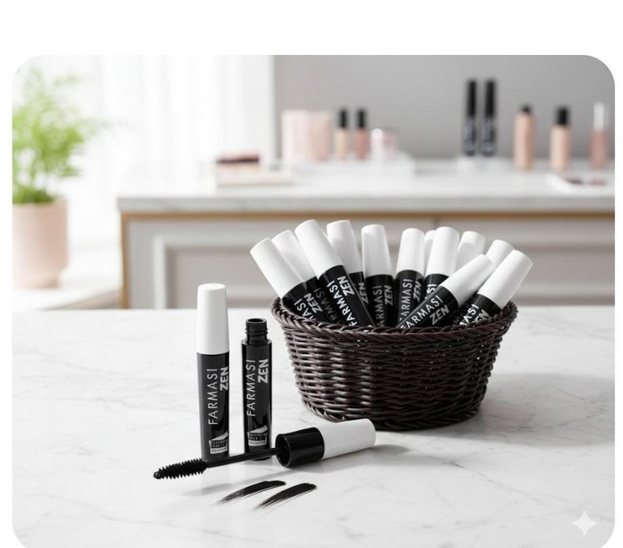 Farmasi Zen maskara, beyaz kapaklı, koyu renkte kirpiklerinizi belirginleştirir.