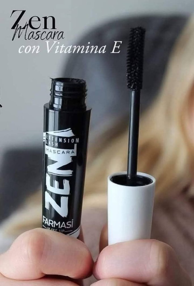 Farmasi Zen siyah maskara, E vitamini ile zenginleştirilmiş, yoğun koyu renk ve kirpik uzatma etkisi sunar.