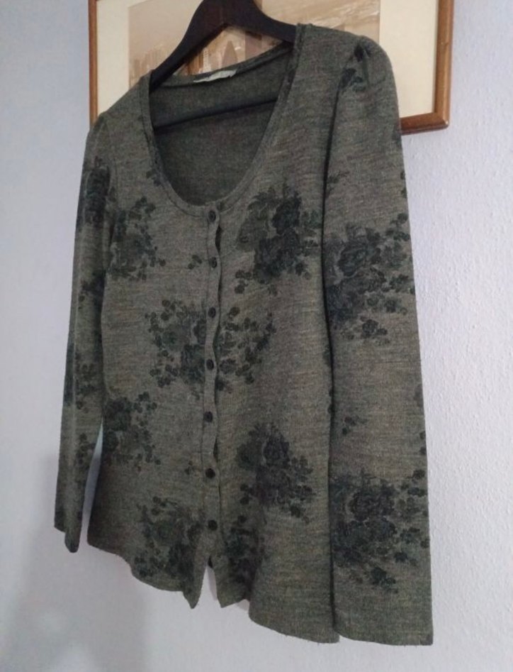 Gri renkli, düğmeli ön kısmı ve yuvarlak yaka detaylı kadın hırkası. Yumuşak triko kumaştan, uzun kollu ve rahat kesimlidir. Günlük kullanıma uygun midi boyda, bohem tarzda bir parçadır. İki kol altı 45 cm ancak 52-53 cm’e kadar esneyebiliyor. Çok yumuşak yapıya sahip. Uzunluk 70 cm. Lütfen açıklama ve resimlere göre değerlendiriniz, iade kabul edemiyorum.