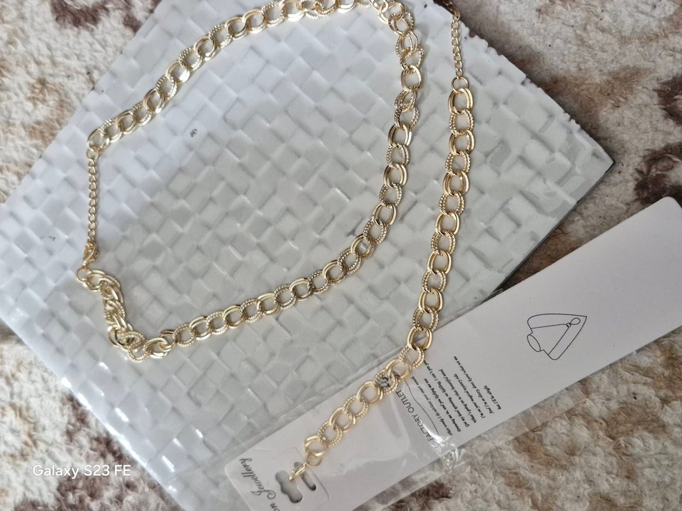 çelik, parlak yüzeyli altın renk kadın el zinciri.ve kolye bileklık 22 cm kolye 45 cm ölculer resımlerde mevcuttur hediye geldı hiç kullanılmadı .Günlük kullanıma uygundur.