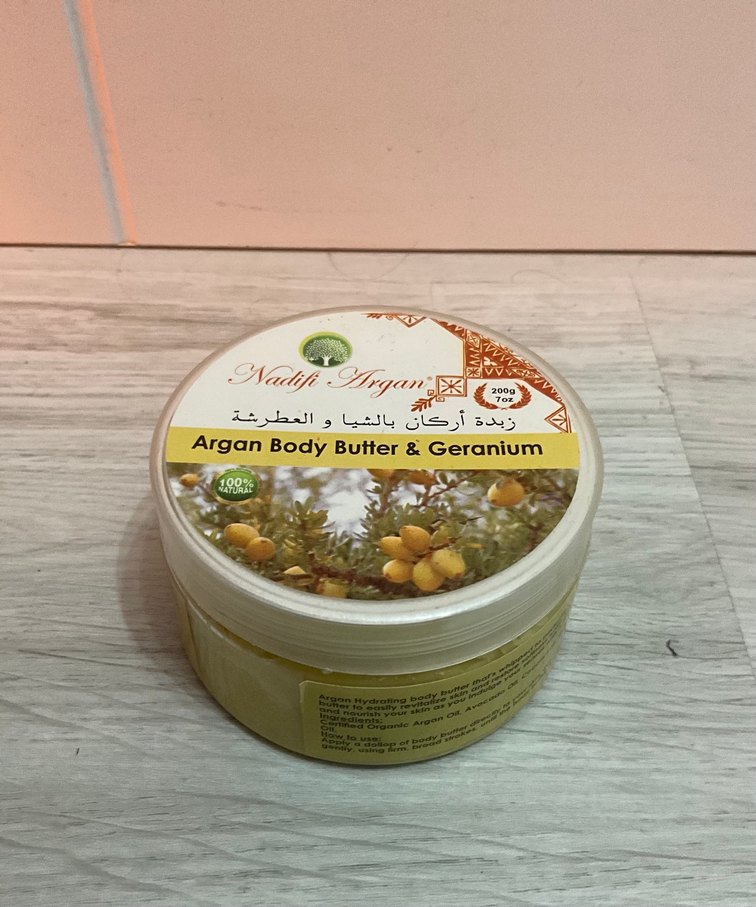 Sıfır Nadifi Argan Body Butter & Geranium, Fas’tan aldım, %100 doğal, marka temsilidir, hızlı kargo yapılır