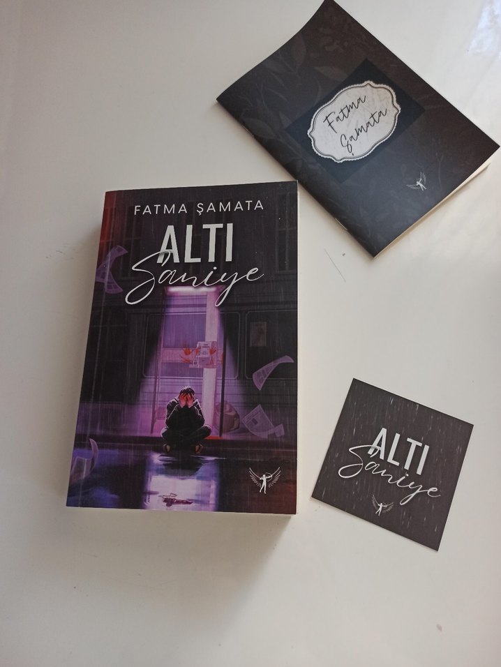 Fatma Şamata'nın "Altı Saniye" adlı romanı, kapakta içerde oturan bir kişiyle koyu temalı tasarıma sahip.