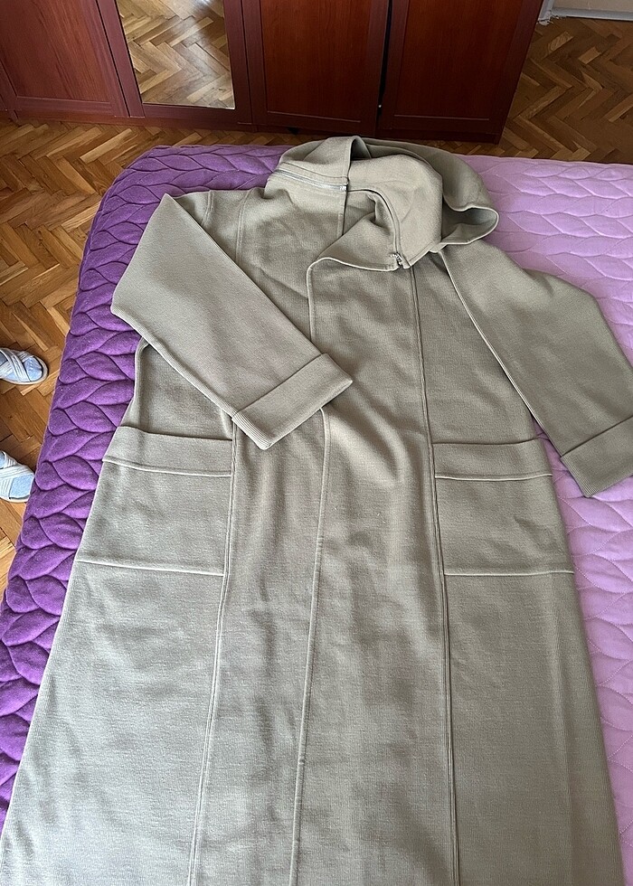 BÜYÜK BEDEN MANTO GİBİ AĞIRLIKTA HAKİ UZUN KAPŞONLU ( KAPŞONU FERMUARLI ÇIKABİLİYOR ) HIRKA YANINDA 2 ADET CEBİ VAR ARKASINDA 2 PARÇA YIRTMAÇLI VAR ( 2 kol arası 72 cm ,KOL BOYU 80 cm boynun bitiminden ve omuzdan kol boyu 65 cm HIRKA BOYU 130 cm
