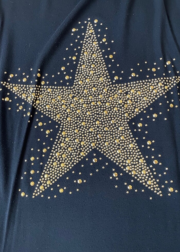 Favori Collection siyah önü sarı kabartma taşlı uzun kollu bluz tshirt Yıldız #mevsimlik #uzunkollu #şıkbluz #siyah #yıldız