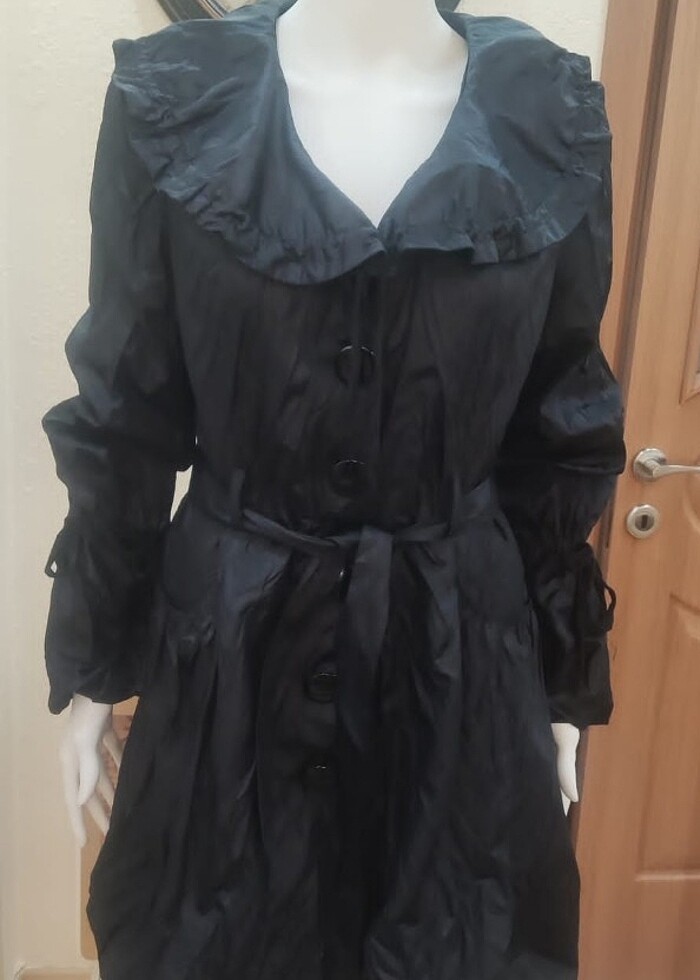 42 beden uyumlu trençkot bir ka. sefer giyildi herhangi bir hasarı yok iki kol arası 52 cm boy 91 cm