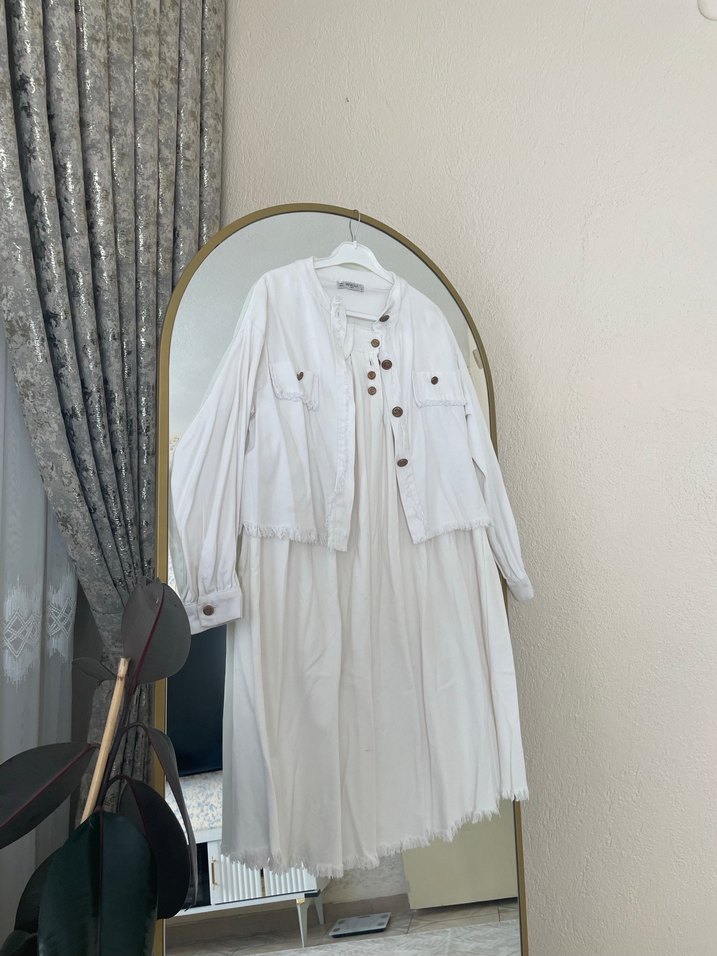 Fayabutik Düğmeli Beyaz Uzun Keten etek Ceket