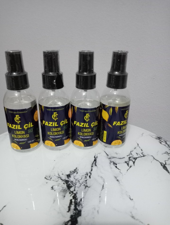 Fazıl limon kokulu kolonyası, 100 ml sprey şişelerde, ferahlatıcı narenciye aromasıyla.