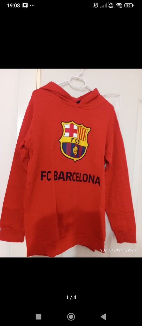 Koyu kırmızı renkte, uzun kollu ve yuvarlak yakalı erkek sweatshirt. FC Barcelona baskısı ve cırt cırt detay içerir, yumuşak ve sıcak kumaştandır.
