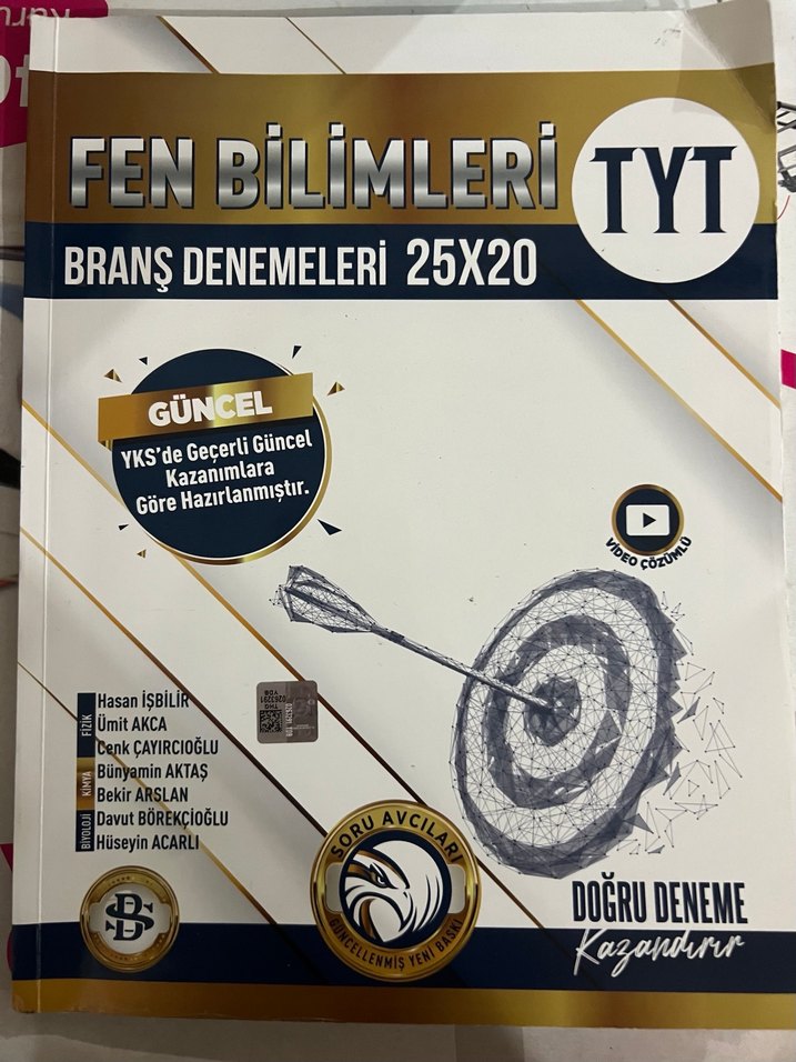 TYT fen bilimleri branş denemeleri içeren, güncel YKS kazanımlarına göre hazırlanmış 25x20 deneme kitabı. Video çözümleri mevcuttur. 4 tanesi cozulu sadece geçen senenin denemesi