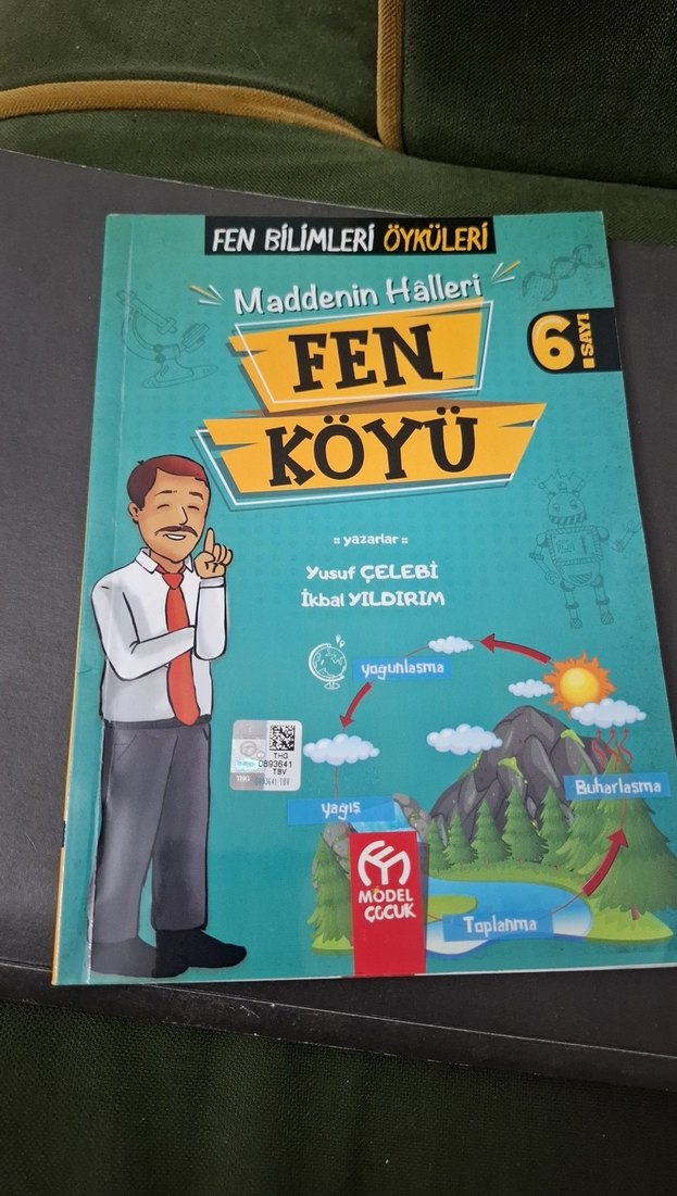 6. sınıf fen kitabı, maddelerin halleri, buharlaşma, yoğunlaşma ve yağış gibi konuları anlatıyor. Görsel destekli eğitici öyküler içerir.