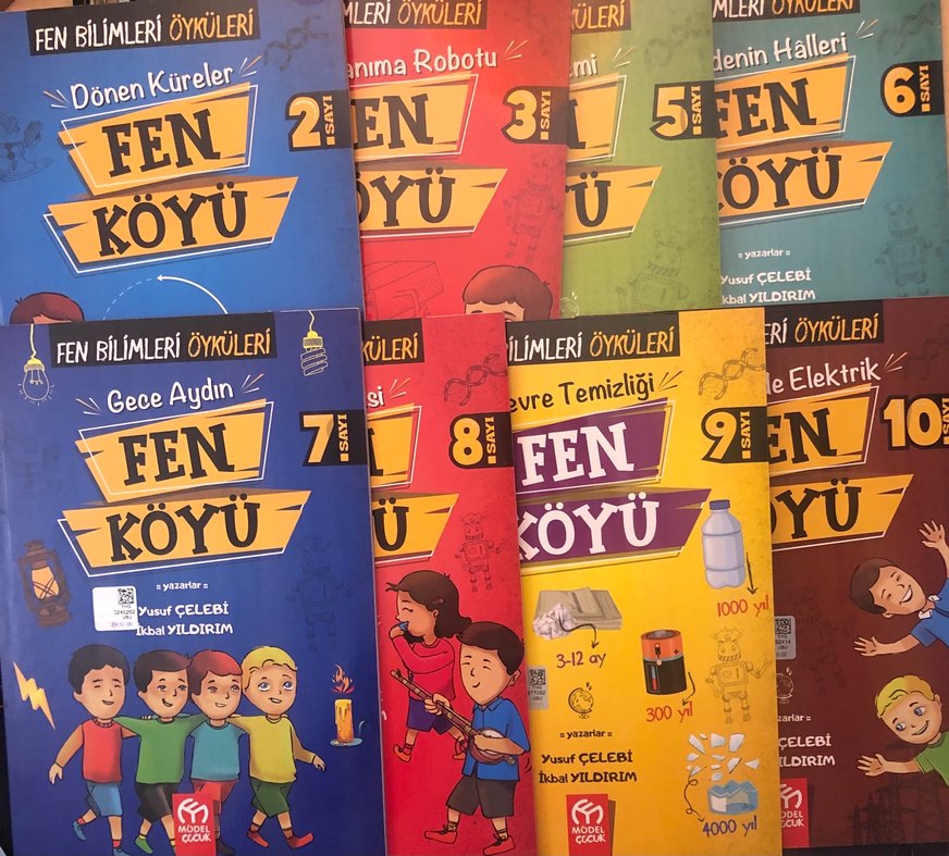 İlan Toplam 8 Kitabı Kapsar (10 kitaplık setin 1. ve 4. sayıları mevcut değildir.) * Yazarlar: Yusuf Çelebi - İkbal Yıldırım * 8 Kitap Toplam: 512 Sf. * Yeni Kitaplar (kitap girişlerinde okulda öğrenciler arasında karışıklık olmasın diye öğretmenleri tarafından yazılı isim ve sınıf bilgisi mevcut olduğundan sıfır ayarında olan kitapları 'yeni' olarak belirttik. ) * Model Çocuk Yayınları 3-12 yaş arası çocuklar için çeşitli fen konularını içeren, renkli resimli ve basit hikayelerden oluşan 8 kitap.