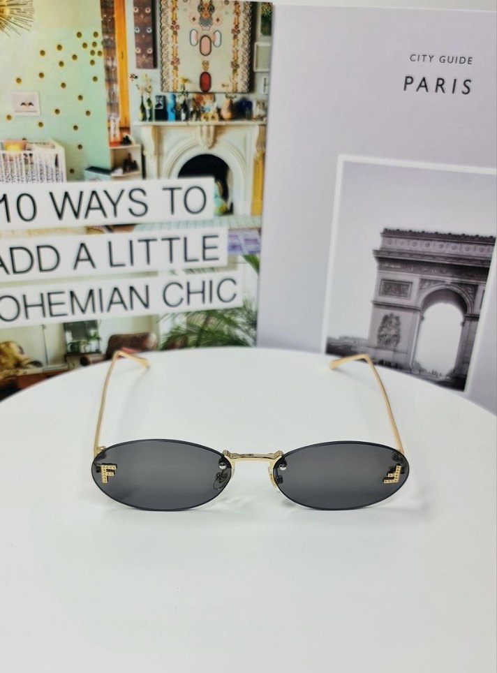 Altın çerçeveli, şeffaf detaylı oval kadın güneş gözlüğü. Gri lensleriyle minimalist ve avangart sokak stili için uygundur. Trendsetterlar için ideal.