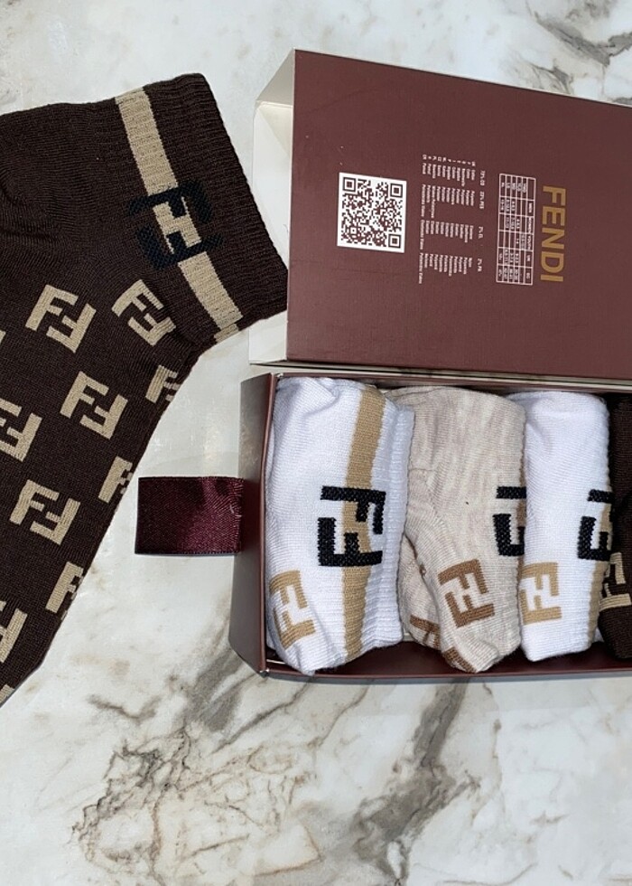 Fendi pamuklu Qr kodlu 6 lı çorap