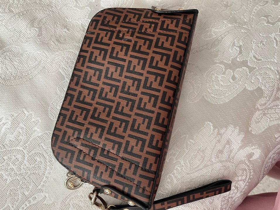 Fendi Baskılı Kahverengi Deri Kadın Clutch Çanta