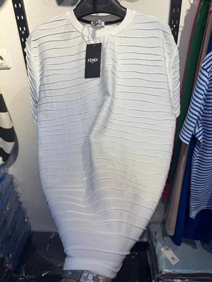 Fendi Beyaz Pileli Erkek Tişört