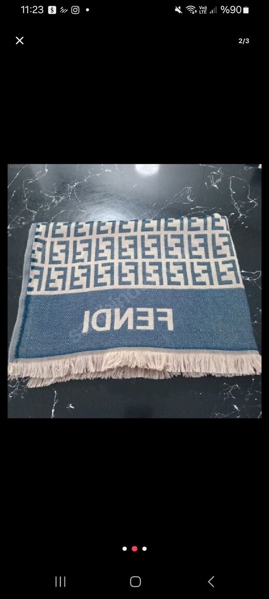Kadın şalı, mavi ve gri renklerde tekstil kumaştan, bohem tarzda ve rahat bir yapıya sahip. Püskül detaylarıyla retro havası katıyor. Fendi