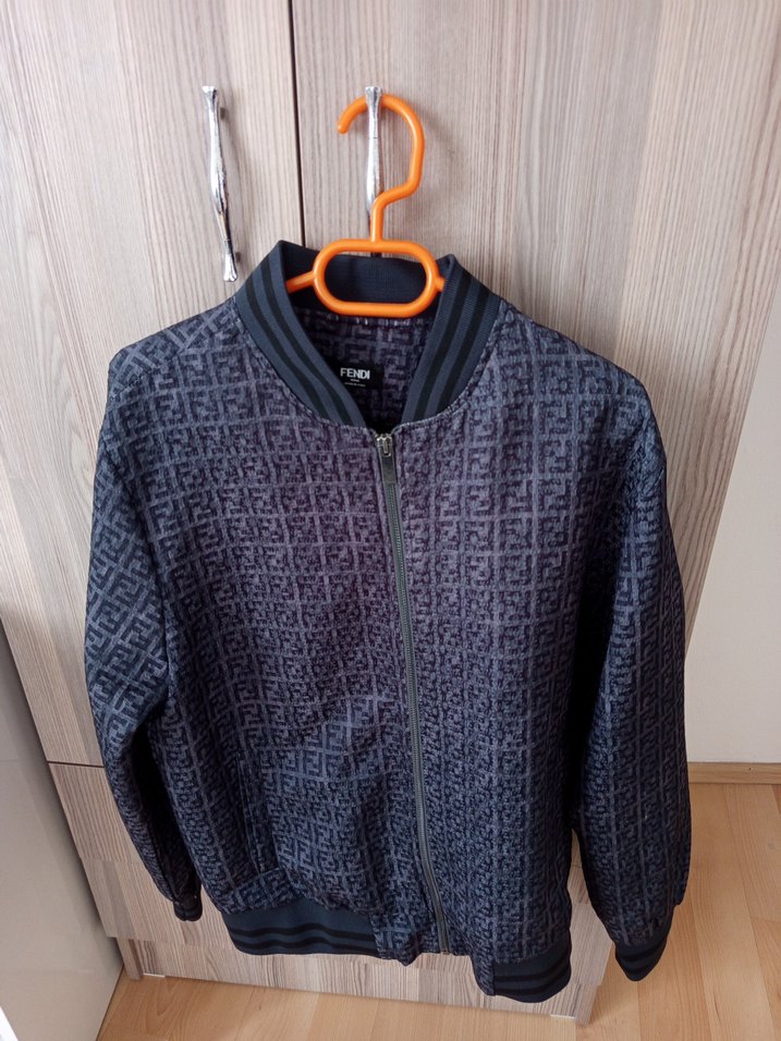 Fendi marka, fermuarlı, uzun kollu, bisiklet yaka, bol kesim, gri baskılı ceket. Yumuşak ve sıcak kumaştan, günlük kullanım için uygun. Hiç giyilmedi, alana hayırli olsun